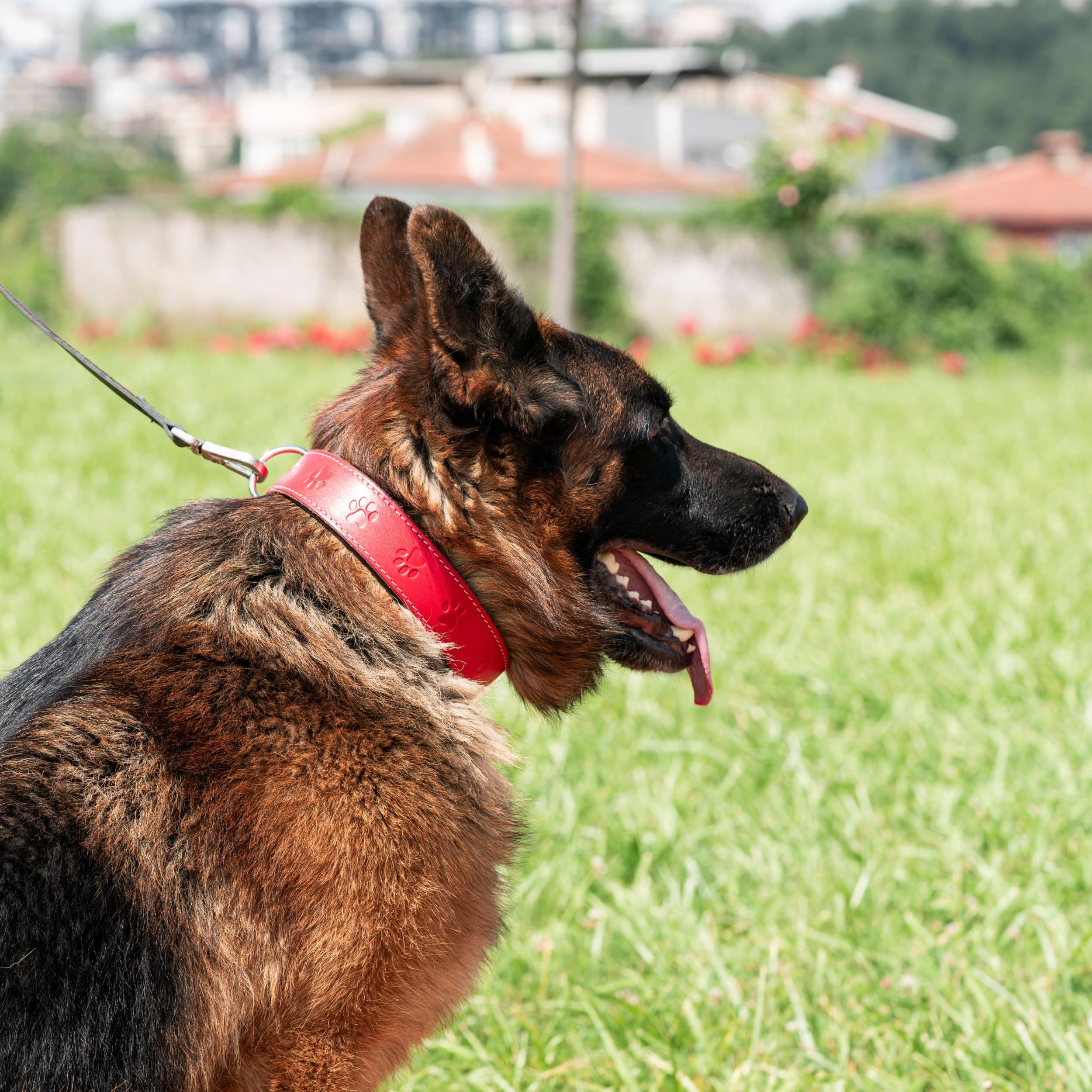 - STYLISH DESIGN🐾 & COLORS🎨: Overall minimalist design embellished with embossed paws. Whatever the mood of your furry friend is, they will look handsome. We are aware of people's popular searches 📈such as black dog collar, brown leather dog collar, red leather dog collar, dog collar blue leather, and camel dog collar, and beginning with five colors for your taste for now. We can't wait to see their cool, goofy, proud, and loving faces in your reviews