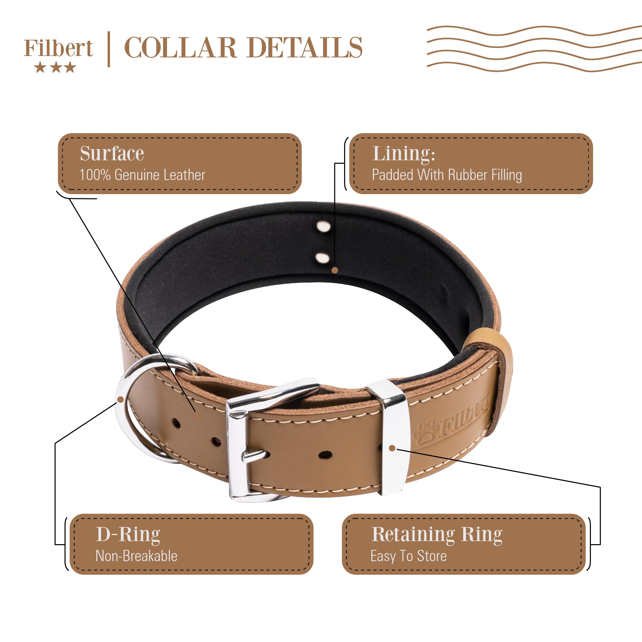 Filbert Personalized Leather Dog Collar with Name, Genuine Leather Dog Collar with Name Plate, Custom, Top-Notch Quality, Strong, Adjustable for All Breeds, Heavy Metal Buckle, for Large Dogs, Camel