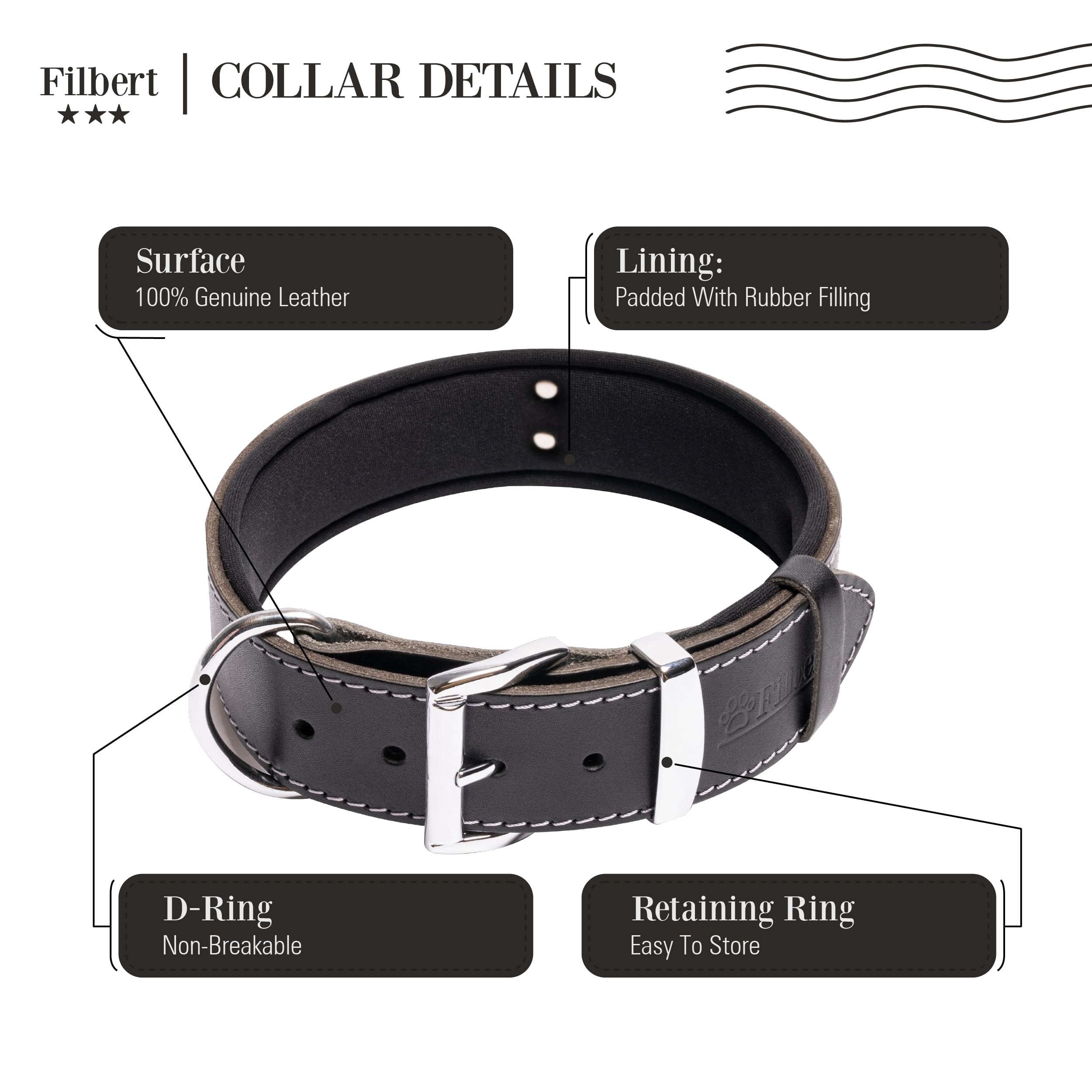 Filbert Personalized Leather Dog Collar with Name, Genuine Leather Dog Collar with Name Plate, Custom, Top-Notch Quality, Strong, Adjustable for All Breeds, Heavy Metal Buckle, for Large Dogs, Black—